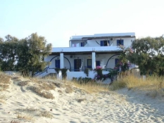 The studios and the tavern of Niko and Maria are situated on the Plaka beach and only 20 meters from the sea. Here the beach is particularly beautiful and busy only during the months of July and August. In my eyes (fine sand, not many people, dunes like at the North Sea ...) the most beautiful stretch of beach. The studios (double rooms with kitchen, bathroom and balcony / terrace) for 2 - 4 people are, depending on season, size, amenities and location. The 2 bedroom apartments with bathroom, kitchen and terrace / balcony for 4 - 5 people are, depending on season, size, amenities and location.